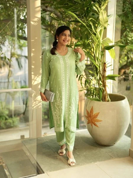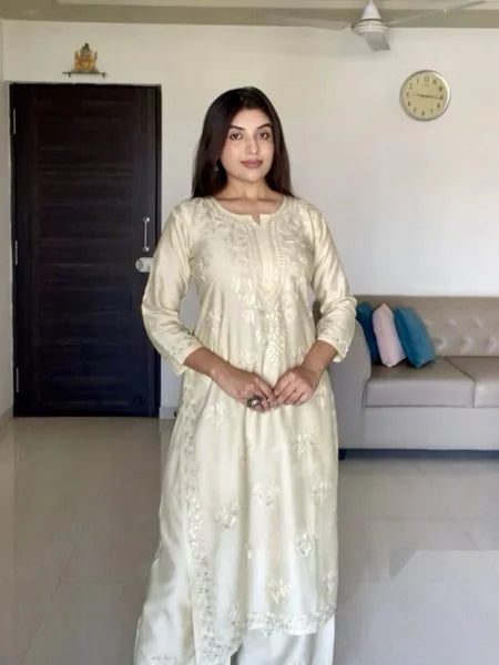 This Chanderi Silk Chikankari kurta set was exactly what I was looking for! The fit wasperfect, delivery was quick, and it's so comfortable.